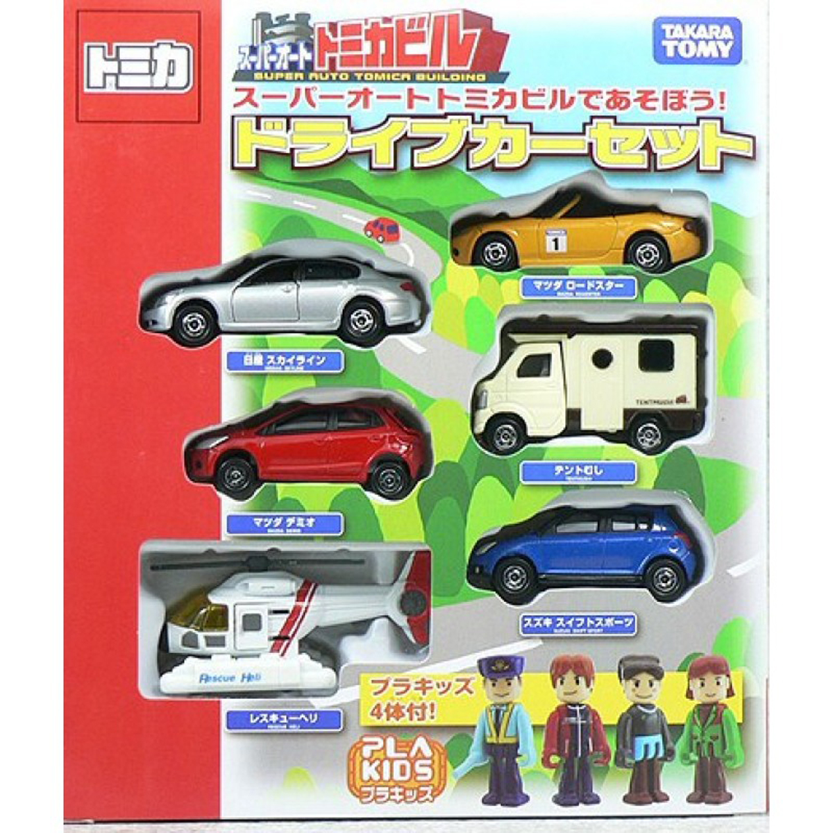 Bộ sản phẩm gồm 6 chiếc Tomica: Suzuki Swift Sport, Rescue Heli, Mazda Demio, Mazda Roadster, Nissan Skyline, Tentmushi. Các bạn sưu tầm tomica không thể bỏ qua bộ sản phẩm này.