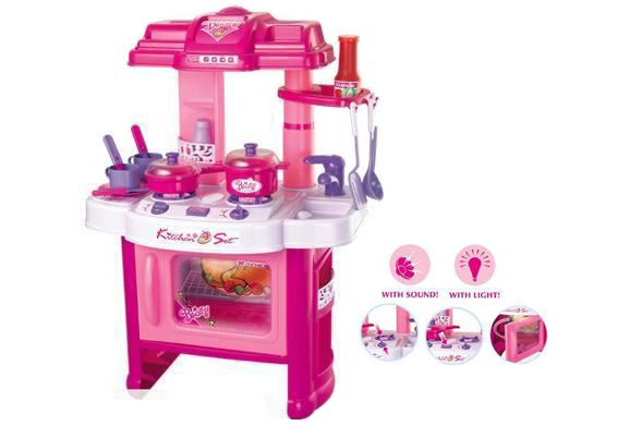 - Bộ đồ chơi nấu ăn cao cấp dành cho bé gái được thiết kế bởi màu hồng chủ đạo và màu tím mà các bé yêu thích, với đầy đủ những dụng cụ nấu ăn cơ bản thường ngày giống các mẹ: bàn bếp, bếp ga, ấm chén, dao, thìa, ...