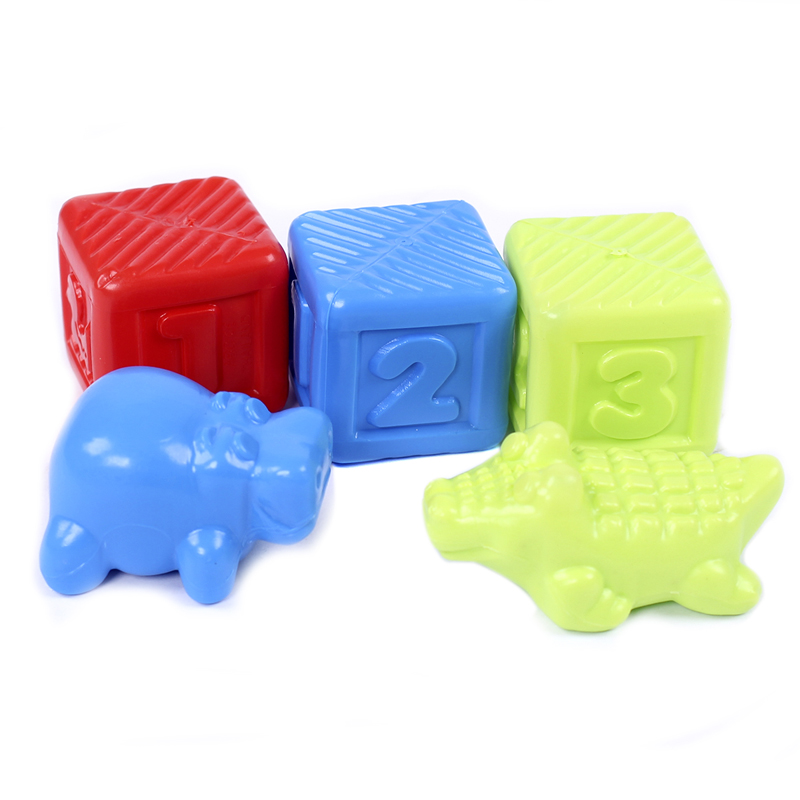 Đồ chơi nhà bóng 5 chi tiết - Cá sấu là hàng Thái Lan cao cấp, gồm 3 khối hộp vuông kích thước 5 x5 cm và 2 hình thú ngộ nghĩnh, chất liệu nhựa PP nên mẹ không phải lo lắng nếu bé có lỡ ngậm vào miệng.