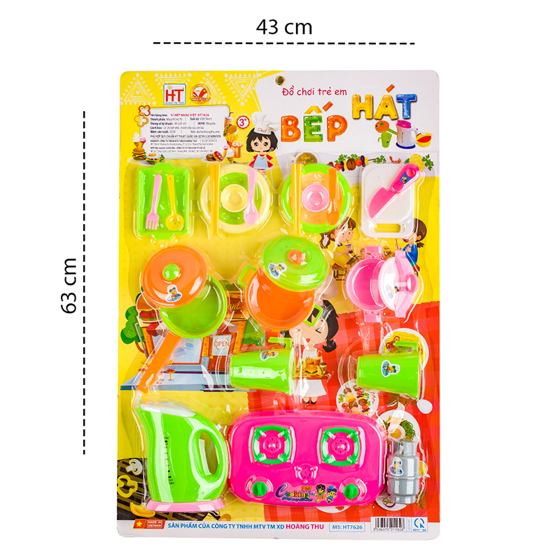 Đồ chơi nhà bếp HT7626 (vỉ 63x43cm) được thiết kế, đáng yêu, xinh xắn của các dụng cụ bếp và hình ảnh sinh động của các loại thức ăn kích thích sự tò mò khiến bé thao tác và vận động tay nhiều hơn, qua đó rèn luyện cho bé sự khéo léo, và tỉ mỉ.
