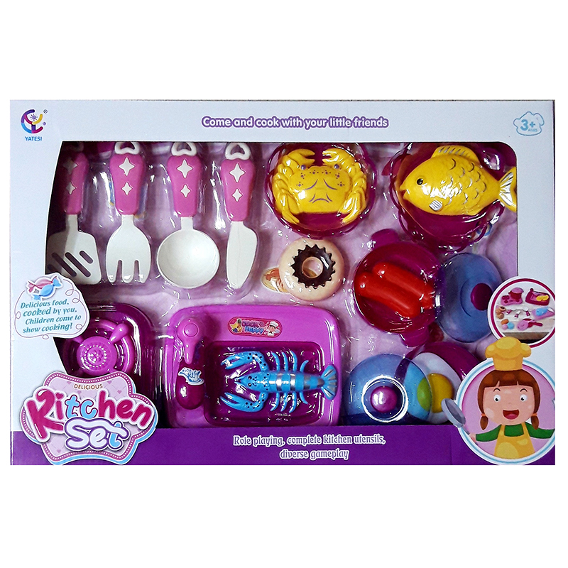 - Đồ chơi gồm nhiều món đồ quen thuộc trong gian bếp để các bé từ từ làm quen, nhận biết, gọi tên và học cách sử dụng từng loại đồ dùng (dao để cắt, thái; nồi để nấu; chảo để rán, xào...).