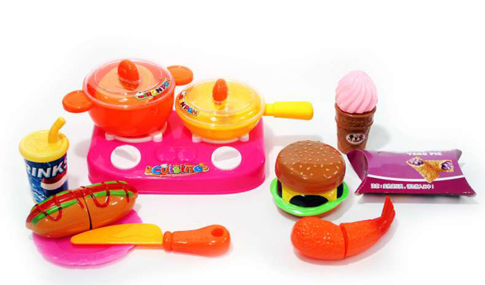 - Mô phỏng nhà bếp với đầy đủ các dụng cụ và nguyên liệu chế biến giúp bé chế biến mọi món ăn theo ý thích của bé.