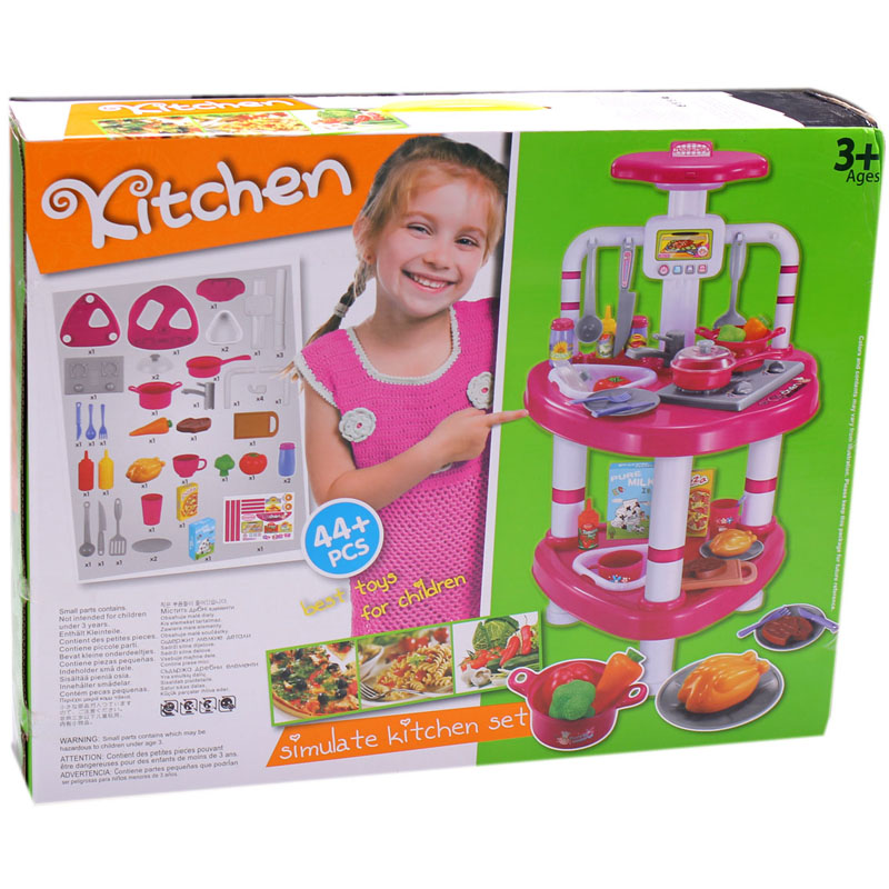 - Bộ đồ chơi bao gồm: khung bếp màu xanh lá, mặt bếp màu trắng, 2 bếp nấu, vòi nước, lò nướng trên thân bếp, bộ dao muỗng, nồi kèm nắp, chảo kèm nắp, ...