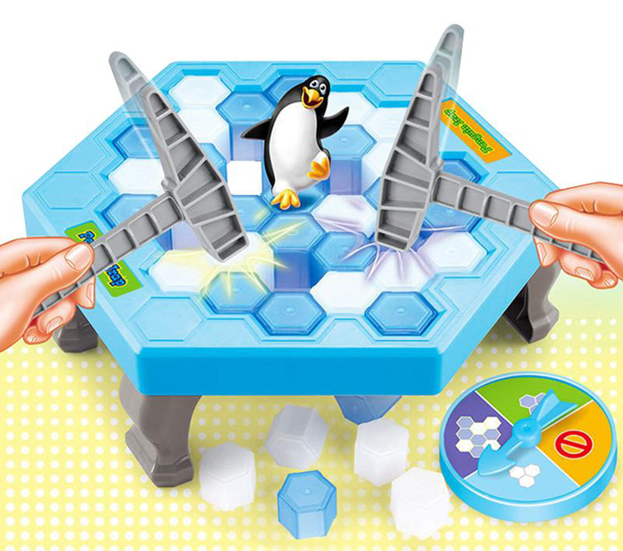 Đồ chơi phá băng bẫy chim cánh cụt - Penguin Trap là một trò chơi thú vị và bổ ích dành cho các bé cũng như người lớn, người già. Luật chơi đơn giản, bạn chỉ cần xoay vòng quanh chọn số lượng và màu sắc viên đá nhựa để đập, ai là người làm cho chú chim rớt ra ngoài vòng chơi thoát thân khỏi bãi tuyết là người thua cuộc. Trò chơi bẫy chim cánh cụt còn giúp bé giảm tối đa thời gian chơi các trò chơi điện tử, giúp bé bớt căng thẳng và giảm bớt các vấn đề về mắt mà các thiết bị điện tử có thể gây ra.