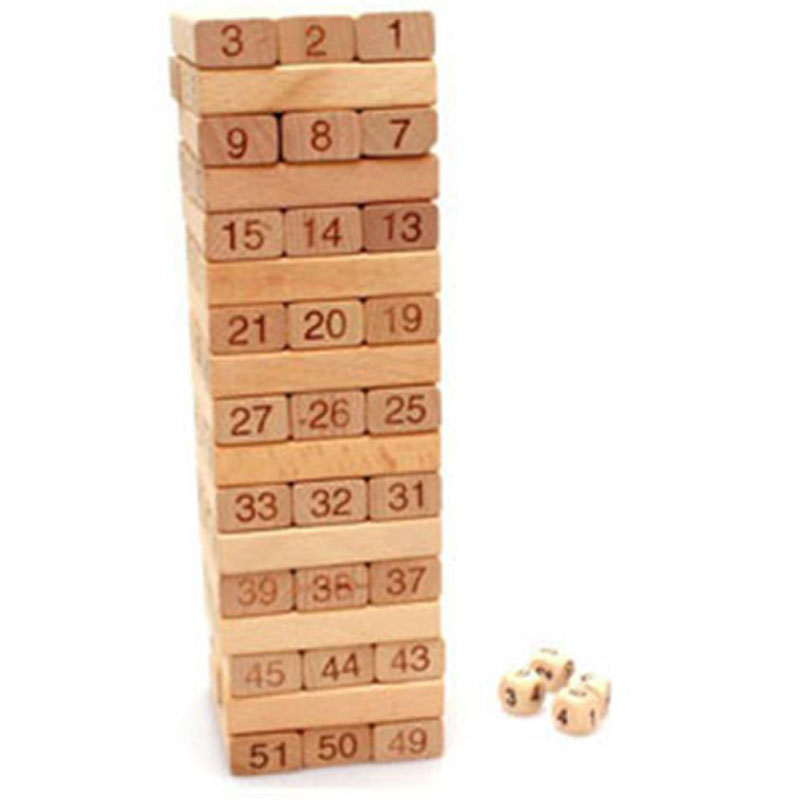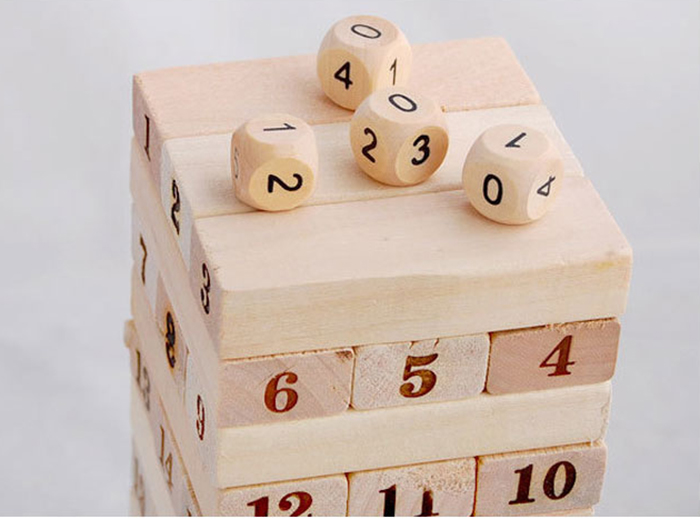 - Bộ sản phẩm gồm 51 thanh gỗ cao su + 4 quân xúc xắc số