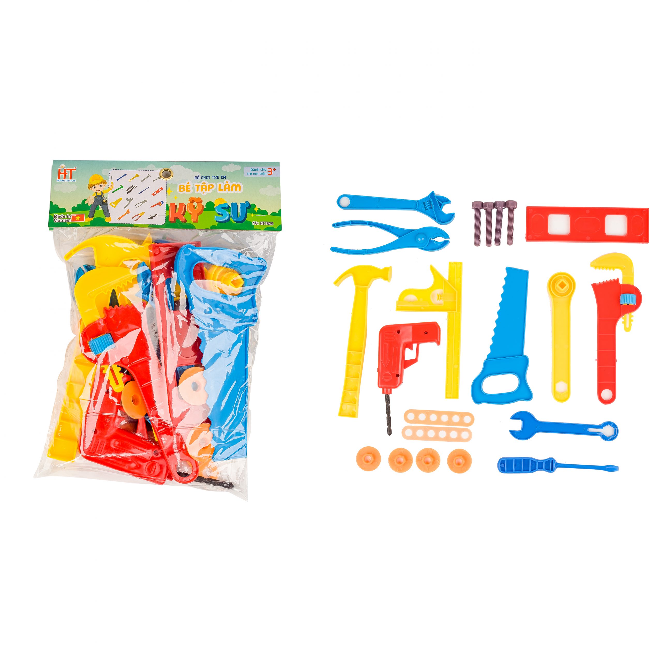 Đồ chơi túi kìm búa Kỹ sư HT7825 (túi, 30x21cm) giúp bé trở thành một ”thợ kỹ sư chuyên nghiệp”, tập tành sửa các món đồ bị hư giúp bố mẹ nhé. Đồ chơi sẽ giúp bé rèn luyện trí nhớ và nhận biết các đồ vật xung quanh, trở nên năng động và cứng cáp hơn.