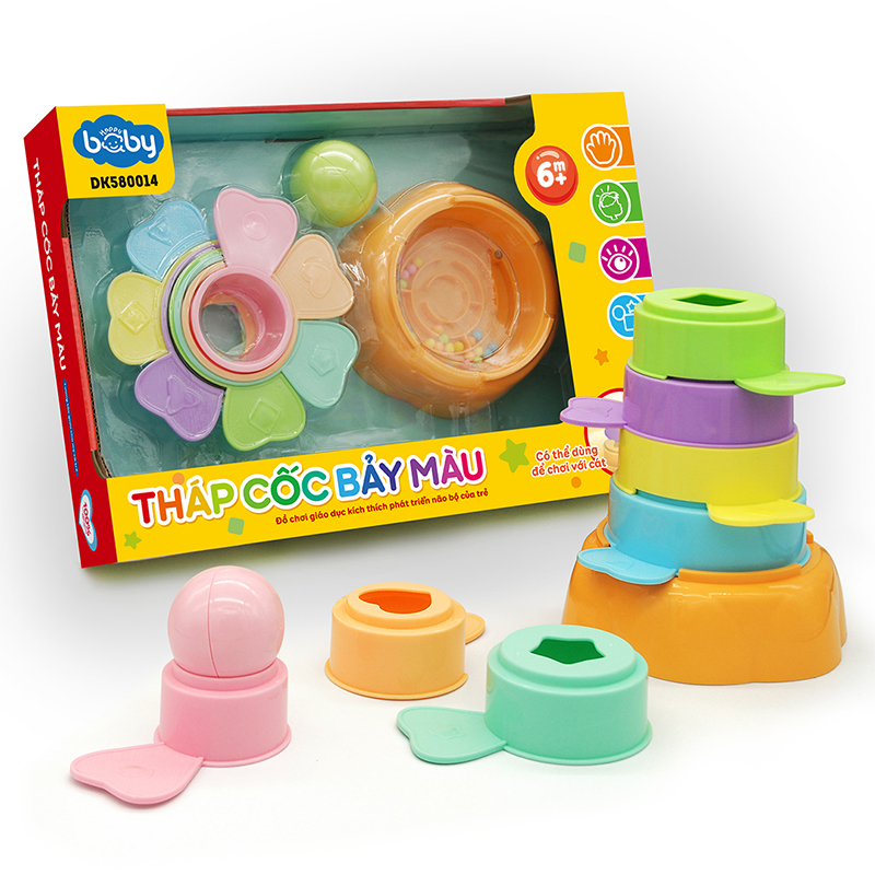 Đồ chơi tháp cốc xếp chồng 7 màu Duka DK580014 với thiết kế 2 trong 1 giúp bé phát triển tư duy và kỹ năng, rèn luyện sự khéo léo của đôi tay. 7 chiếc cốc với kích cỡ to dần sẽ tăng thêm phần thử thách cho bé khi chơi. Thông qua đây bé sẽ học thêm được về tư duy logic và khả năng ước lượng kích cỡ các đồ vật.