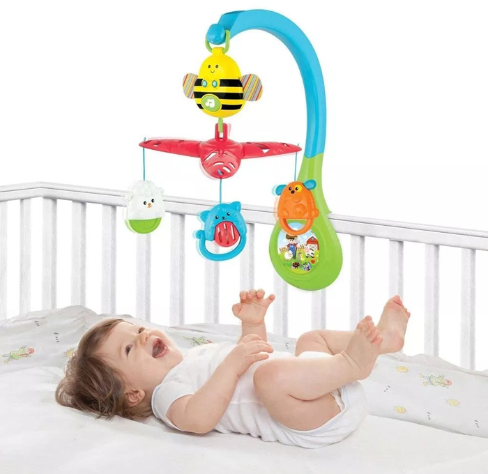 - Đồ chơi khi treo xoay chuyển nhẹ nhàng sẽ làm cho các con vật di chuyển như đang nhảy múa trước mặt bé, từ đó kích thích thị giác và khả năng vận động trong bé, cho bé những giờ chơi hào hứng.
