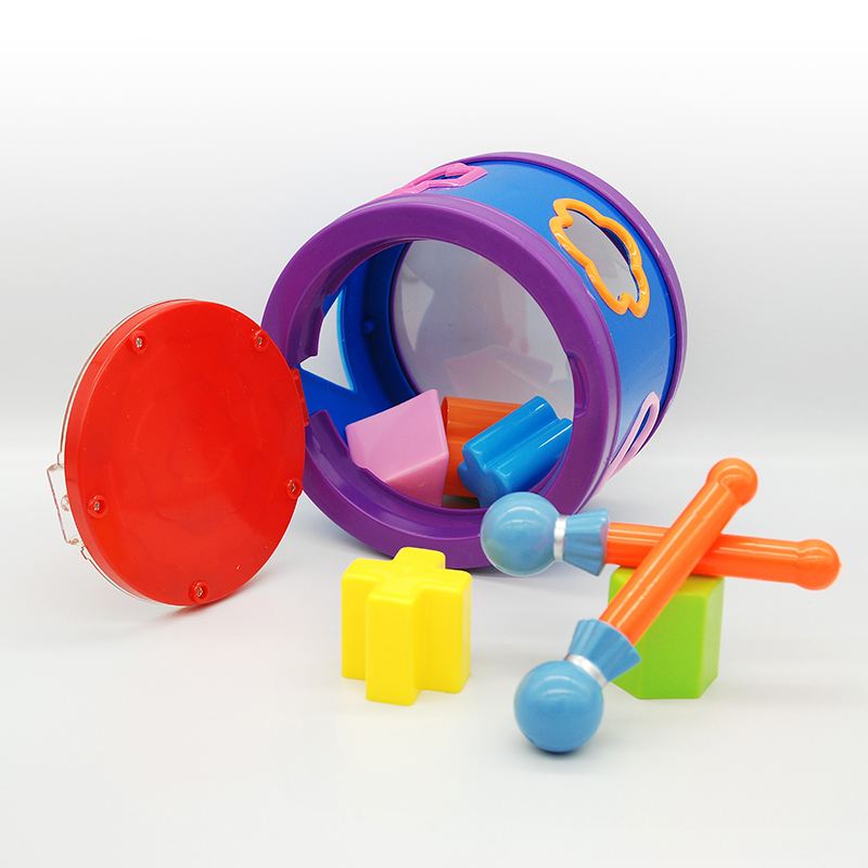 - Bé có thể chơi theo nhiều cách khác nhau với các khối thả hình màu sắc hoặc dùng đùi trống để đánh vào mặt trống tạo ra âm thanh vui nhộn