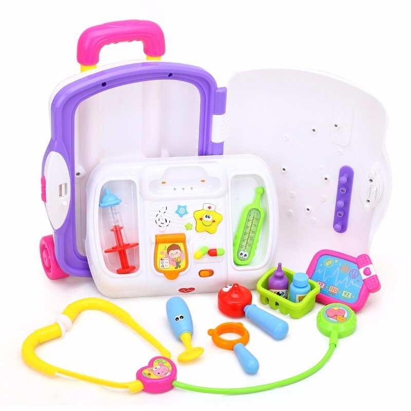 Đồ chơi vali bác sĩ Huile Toys HL.3107 gồm các dụng cụ bác sĩ như: ống nghe, chai thuốc, kim tiêm...được đựng trong chiếc vali nhỏ, có thể kéo đi dễ dàng. Sản phẩm được làm từ chất liệu nhựa an toàn, cho bé cùng các bạn tham gia trò đóng giả làm bác sĩ, bệnh nhân đầy thú vị.