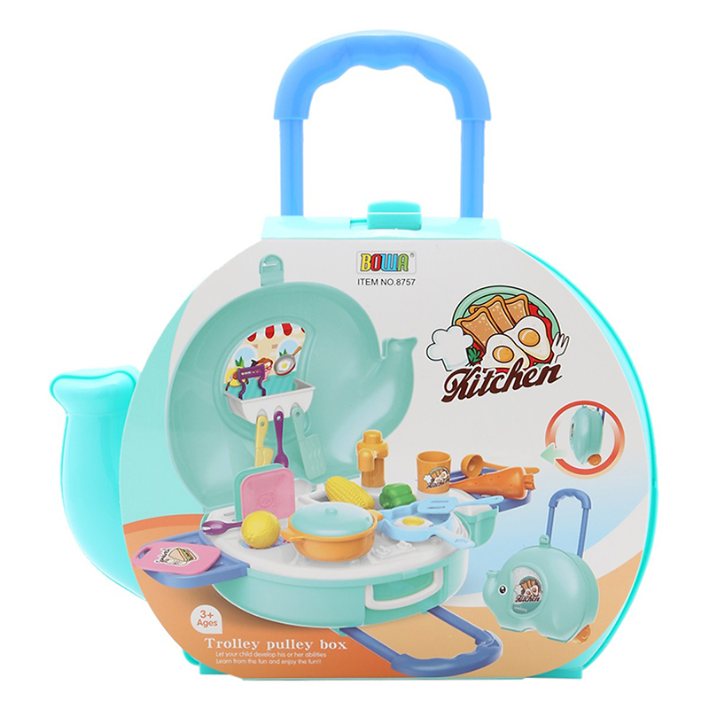 Đồ chơi vali nhà bếp hình voi Bowa 8757 gồm 27 chi thiết thiết kế có bánh xe bé sẽ dễ dàng di chuyển biến thành 1 chiếc vali xinh xắn, với xoong, nồi, bếp ga...bé có thể hóa thân thành đầu bếp nhí. Đồ chơi thích hợp làm quà tặng cho bé trong dịp Noel, năm mới.