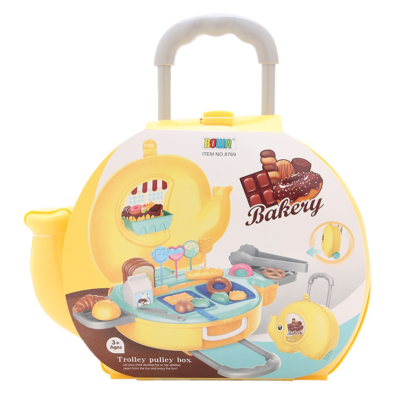 Đồ chơi vali tiệm bánh kẹo hình voi Bowa 8769 làm từ chất liệu nhựa ABS cao cấp, an toàn cho sức khỏe của bé khi chơi. Bộ valy kéo hình voi tiệm bánh ngọt - 8769 là một sản phẩm sinh động, bắt mắt từ hình dáng bên ngoài đến những sản phẩm bên trong.