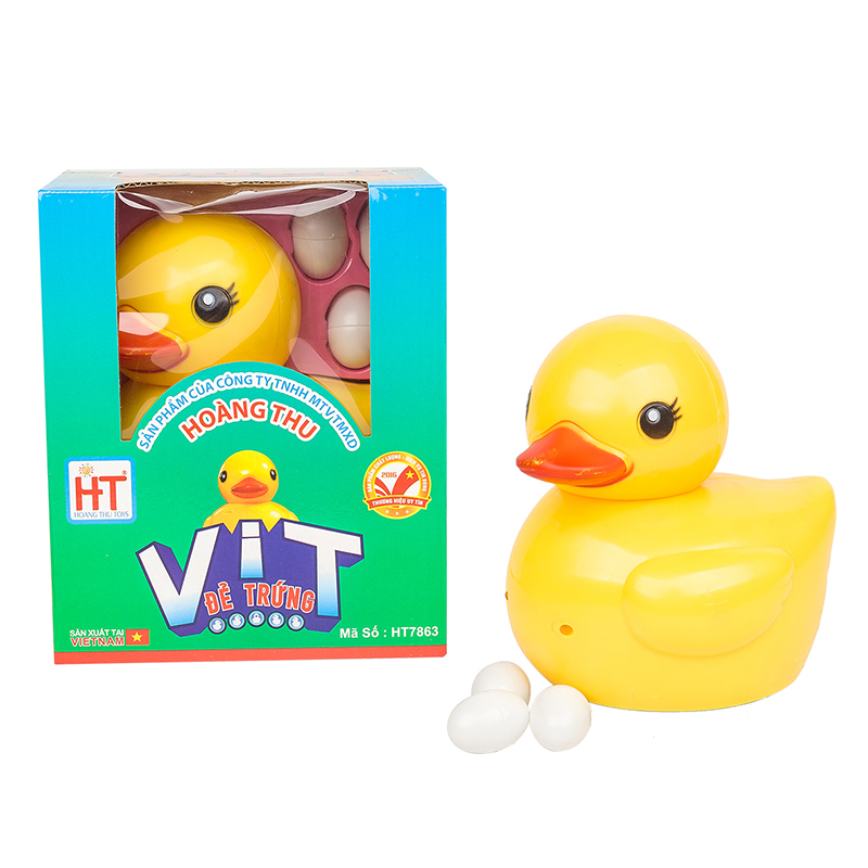 Đồ chơi Vịt đẻ trứng nhạc Việt HT7863 sử dụng Pin để mô phỏng chú vịt đẻ trứng kèm bản nhạc vui nhộn, vịt còn có thể di chuyển về phía trước mang đến nhiều bất ngờ thú vị cho trẻ. Sản phẩm sẽ là món quà thú vị cho các bé trong các dịp lễ tết, sinh nhật.