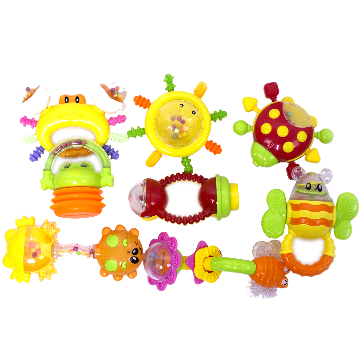 - Đồ chơi kích thích giác quan cho bé: màu sắc tươi tắn với nhiều hình thù con vật khác nhau giúp kích thích thị giác. Mỗi món đều được cấu tạo viên xúc xắc bên trong, khi chơi sẽ tạo ra âm thanh vui tai giúp bé kích thích phát triển thính giác. Sản phẩm giúp bé phát triển khả năng nghe nhìn cho bé thêm hiếu động, hoạt bát.