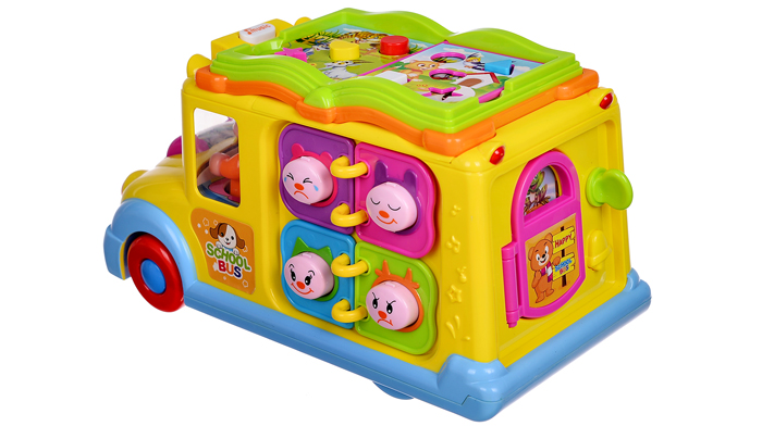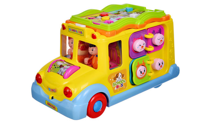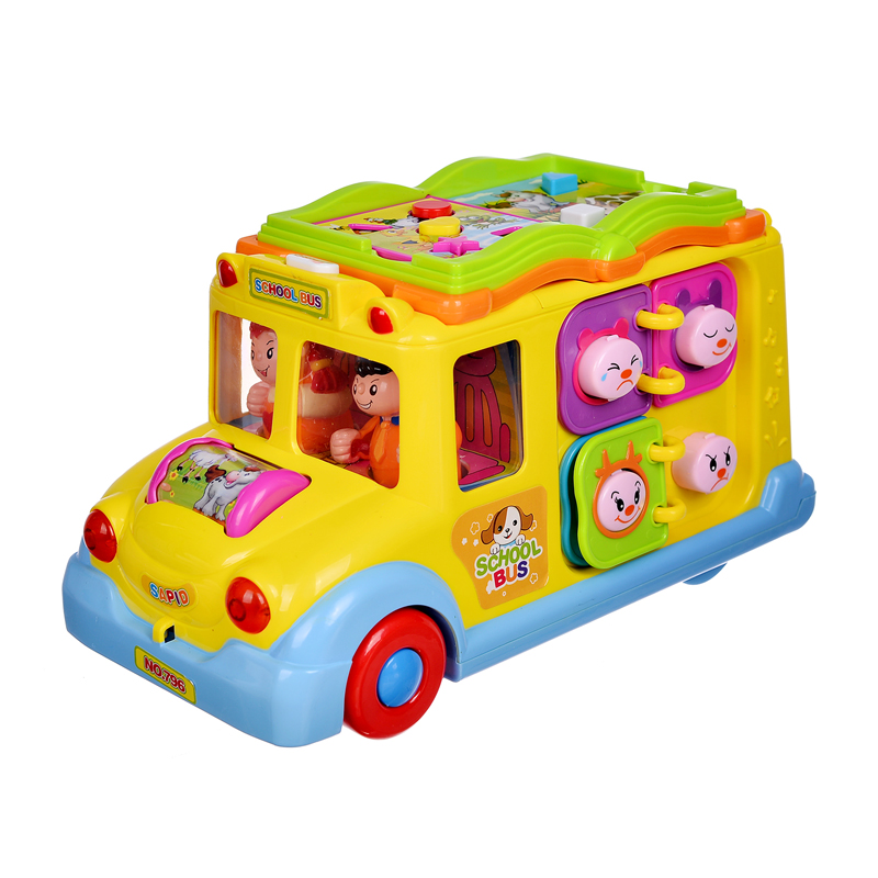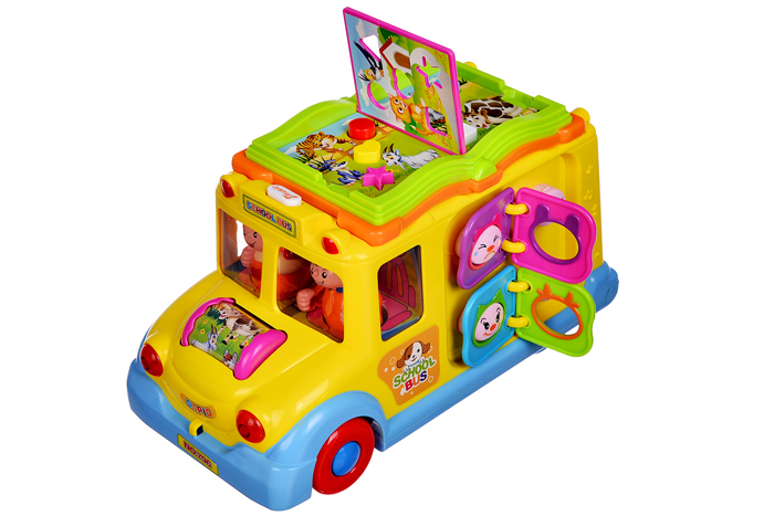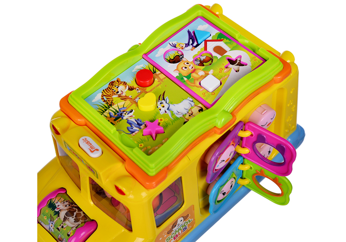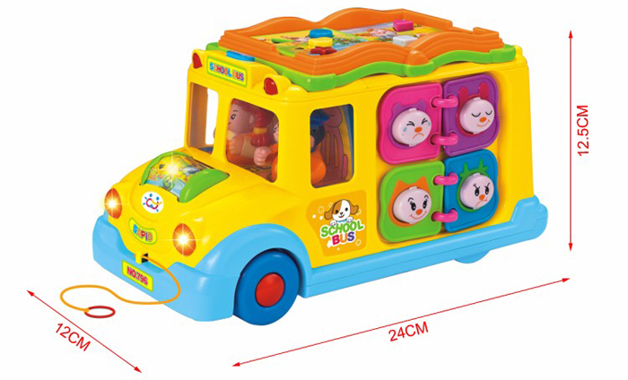 Với thiết kế mô phỏng hình xe bus trường học cùng màu sắc và hình ảnh động vật ngộ nghĩnh, đồ chơi xe buýt Huile Toys HL.796 (12M+) sẽ món đồ chơi thông minh thú vị dành cho bé từ 1 tuổi trở lên. Bé có thể kéo xe bus di chuyển, nhấn nút bật âm nhạc, xoay bánh răng của xe để xem mô hình phía trên thay đổi...Đồ chơi làm bằng chất liệu nhựa nguyên sinh an toàn cho bé.