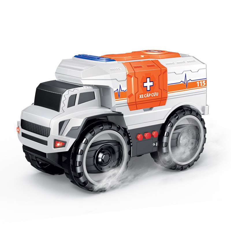 - Thiết kế mô phỏng theo xe cứu thương với gam màu trắng, 4 bánh xe to, có in số cứu thương khẩn cấp