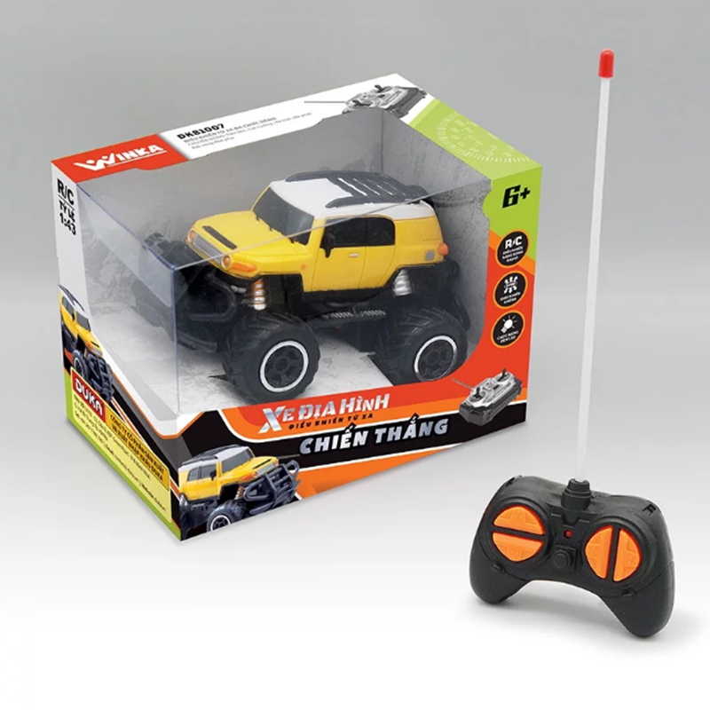 Đồ chơi xe địa hình điều khiển từ xa - Chiến Thắng DK81007 với bánh xe to nên bé có thể điều khiển dễ dàng để vượt qua các địa hình mấp mô. Kiểu xe địa hình với hệ thống R/C dễ điều khiển, bé có thể chơi trò đua xe, vượt chướng ngại vật cùng bạn bè.