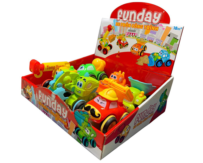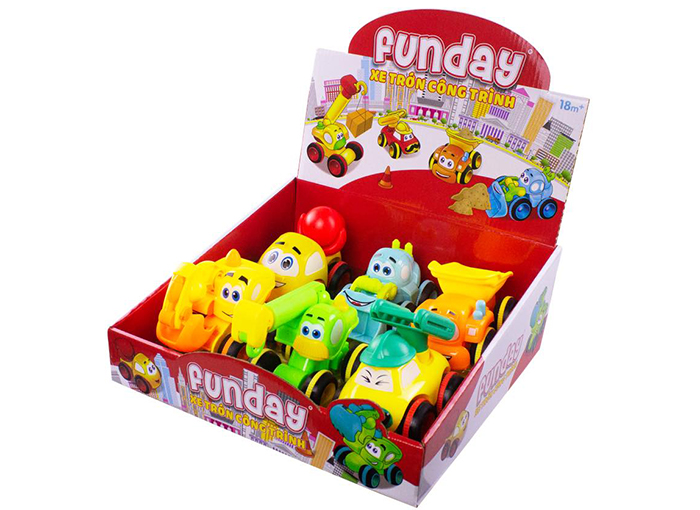Đồ chơi xe trớn công trình Funday với thiết kế mô phỏng theo các loại xe công trình như: xe trộn bê tông, xe tải, xe cẩu, xe ủi...với màu sắc nổi bật thu hút sự chú ý của bé. Sản phẩm sử dụng lực bánh đà để tạo ra sự di chuyển nên bé có thể chơi được lâu hơn so với các loại đồ chơi bằng Pin.