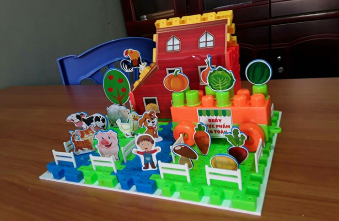 - Ráp hình mô phỏng lại nông trại với nhà, khu nuôi gia súc, vườn trồng rau...