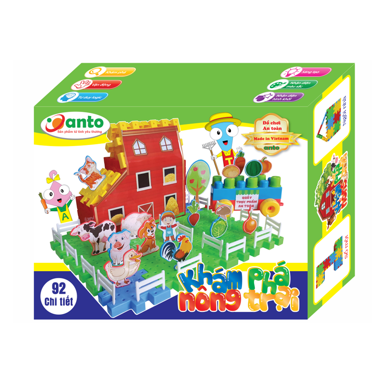 Đồ chơi xếp hình Anto44 - Khám phá nông trại với các chi tiết được làm từ chất liệu nhựa nguyên sinh, sẽ tái hiện lại hình ảnh của nông trại với các loại gia súc, vườn rau...sống động và thú vị. Thông qua trò chơi ghép hình, bé sẽ phát triển vận động và rèn luyện sự khéo léo trong các thao tác.
