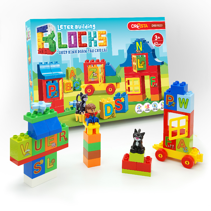 Đồ chơi ghép hình đoàn tàu - chữ cái Duka DK81022 với 62 chi tiết cho bé sáng tạo