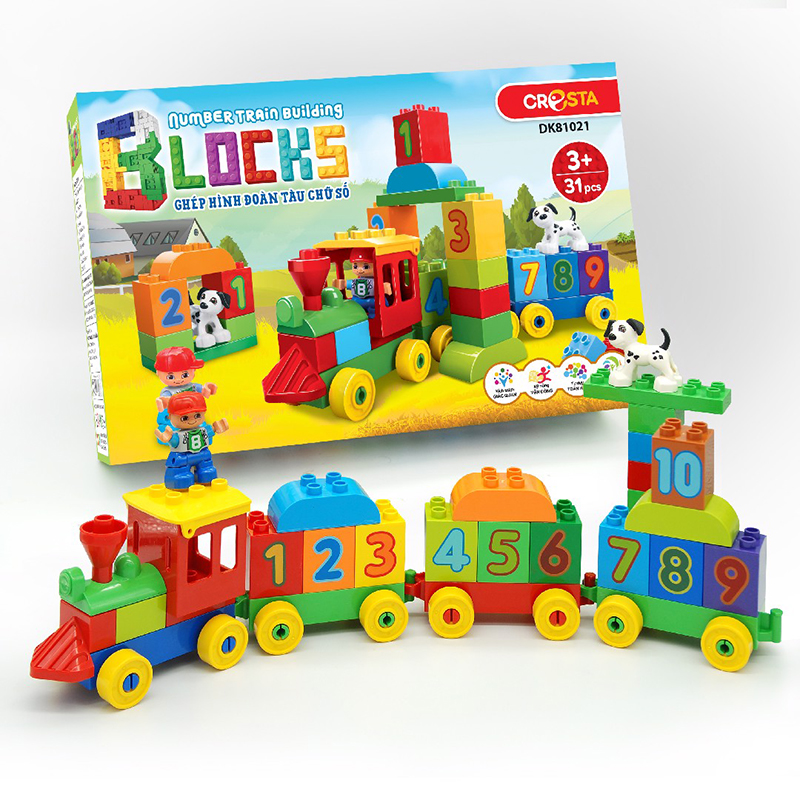 - Với 31 chi tiết bé sẽ lắp ghép được mô hình 1 đoàn tàu thật ngỗ nghĩnh mang các chữ số từ 1-10.
