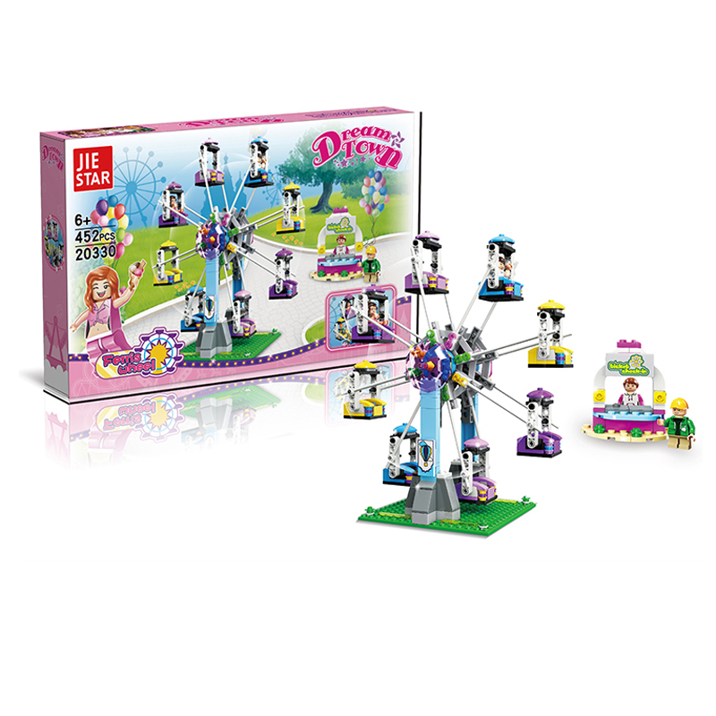 Đồ chơi xếp hình Jie Star 20330 - Vòng quay bánh xe gồm 452 chi tiết, được làm từ chất liệu nhựa an toàn, tái hiện lại 1 khu vui chơi trong công viên. Thông qua việc lắp ráp, bé sẽ học được tính kiên nhẫn, phát triển tư duy cũng như mang đến sự hứng thú khi chơi cho trẻ.