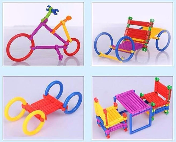 Đồ chơi xếp hình que 800 chi tiết là một sản phẩm sáng tạo bao gồm rất nhiều những que nhựa với nhiều hình dạng khác nhau như: hình vuông, hình tròn, hình tam giác,… và có nhiều màu sắc rực rỡ để các bé có thể thỏa sức sáng tạo ra những đồ dùng, đồ vật thông dụng trong cuộc sống hàng ngày hoặc thỏa sức sáng tạo không giới hạn ra những hình thù do bé tưởng tượng ra….