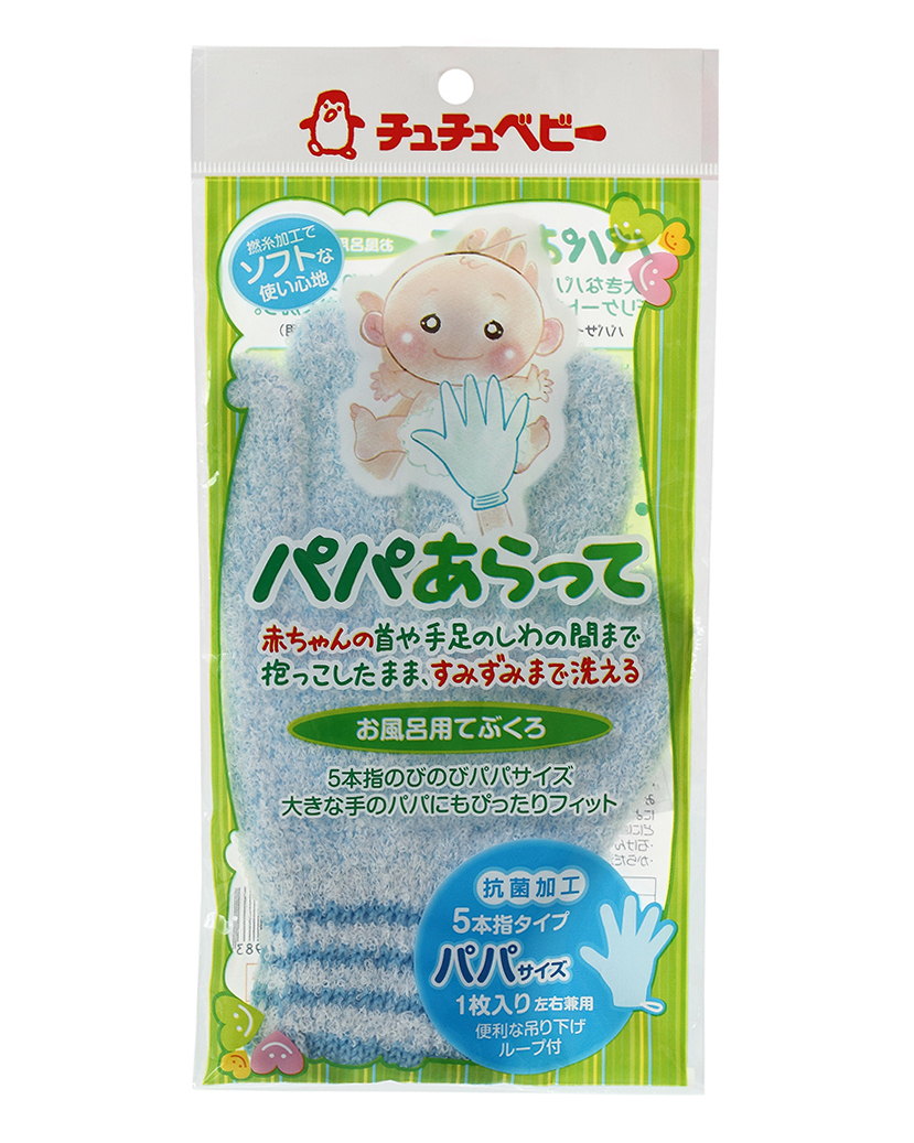 Găng tay tắm cỡ lớn dành cho tay bố có hình dạng 5 ngón tay, giúp bố mẹ có thể vừa đỡ được bé trong lúc tắm, vừa linh động rửa sạch những ngấn, khớp cổ, nách,... cho bé. Sản phẩm được làm từ sợi dệt có khả năng kháng khuẩn nhanh khô nên đảm bảo được vệ sinh.