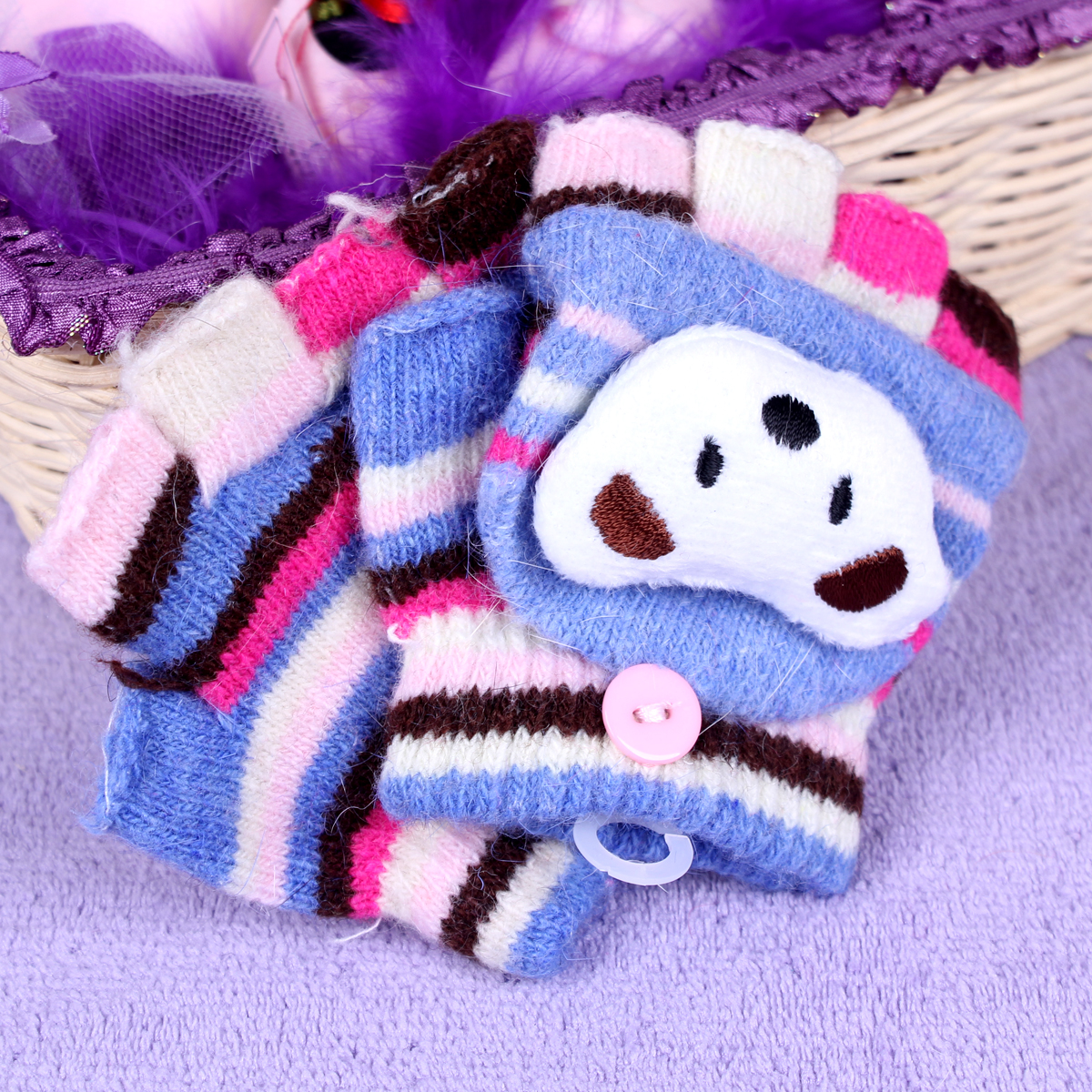 Găng được may bằng chất liệu len dày dặn, mềm mịn và ấm áp. Dành cho bé từ 6 tháng tuổi trở xuống.