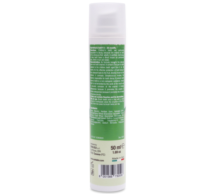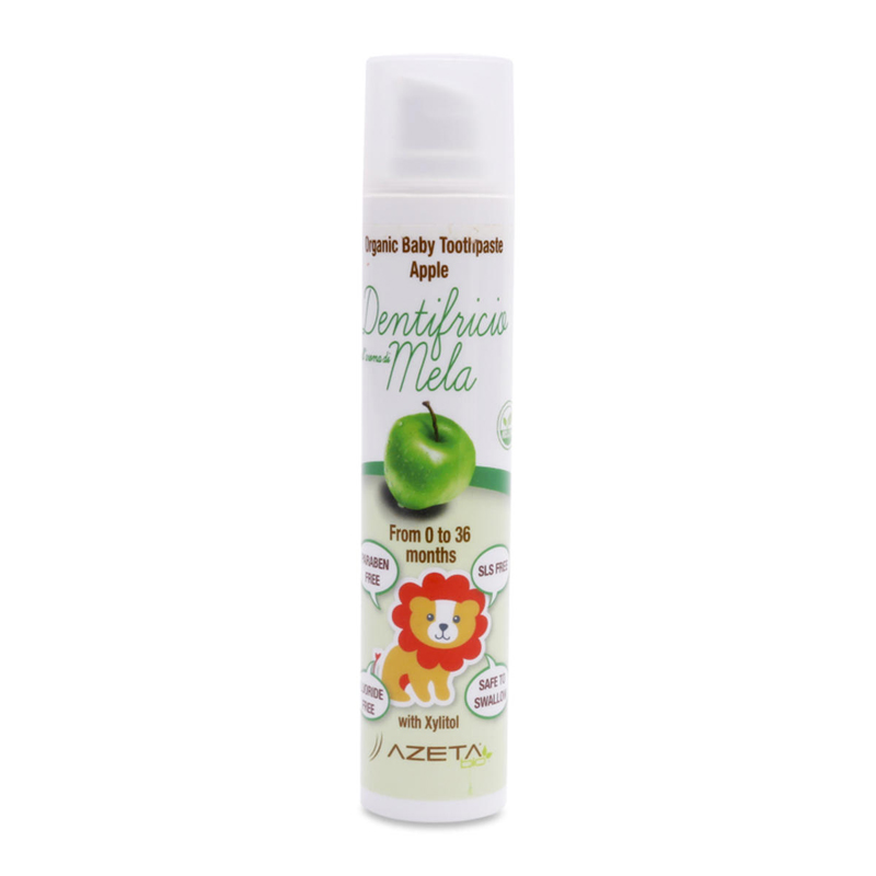 Gel đánh răng AzetaBio Organic Baby vị Táo (0-36M) với thành phần 100% tự nhiên kết hợp Xylitol, được kiểm nghiệm và công nhận đảm bảo tiêu chuẩn sản phẩm thiên nhiên Organic tại Italia và Châu Âu, không chỉ giúp bảo vệ men răng mà còn hoàn toàn an toàn nếu bé nuốt.