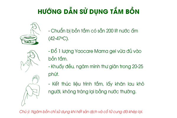 *Chú ý: phương pháp tắm bồn chỉ áp dụng khi sản phụ đã sạch hoàn toàn sản dịch và không tắm quá 10 phút.