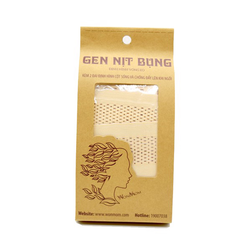 Gen nịt bụng Wonmom là cách sử dụng miếng gen hoặc tã chéo quấn chặt vào bụng để tạo thành áp lực vật lý khiến vòng bụng của người phụ nữ dần trở nên săn chắc như cũ. Khi kết hợp với gừng giảm eo làm chất xúc tác, sẽ giúp cho tiến trình đốt cháy mỡ thừa nhanh và hiệu quả hơn