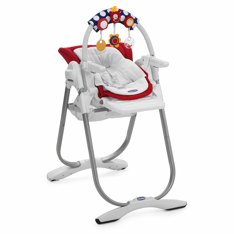 - Ghế ăn Chicco với thanh treo đồ chơi ngộ nghĩnh vừa có thể là chiếc nôi giúp bé ngủ ngoan.
