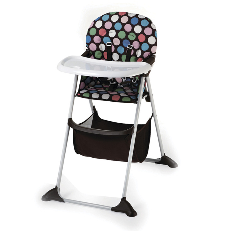 Giỏ lưới đựng đồ chơi bên dưới kết hợp với khay ăn, giúp mẹ dễ dàng để các món đồ cần thiết