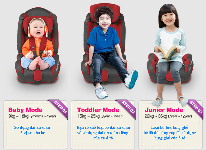- Độ tuổi sử dụng: 9 tháng tuổi đến 12 tuổi (9kg – 36kg).