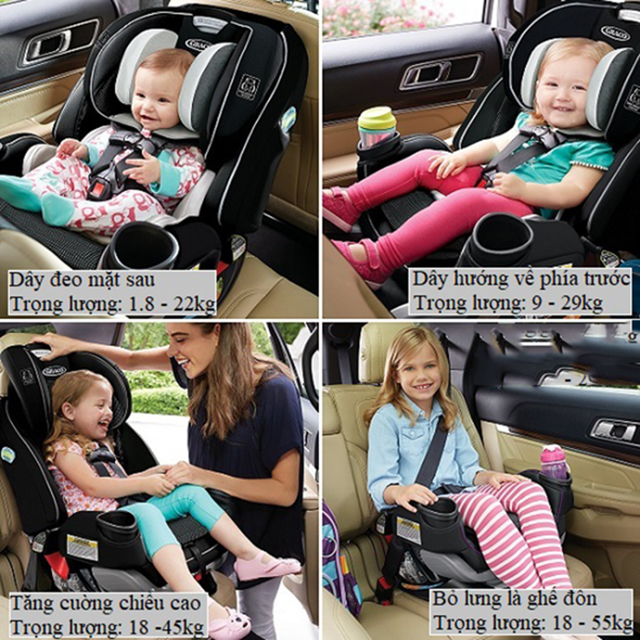- Ghế ngồi ô tô Graco 4Ever Extend2Fit có thể sử dụng trong 4 giai đoạn: