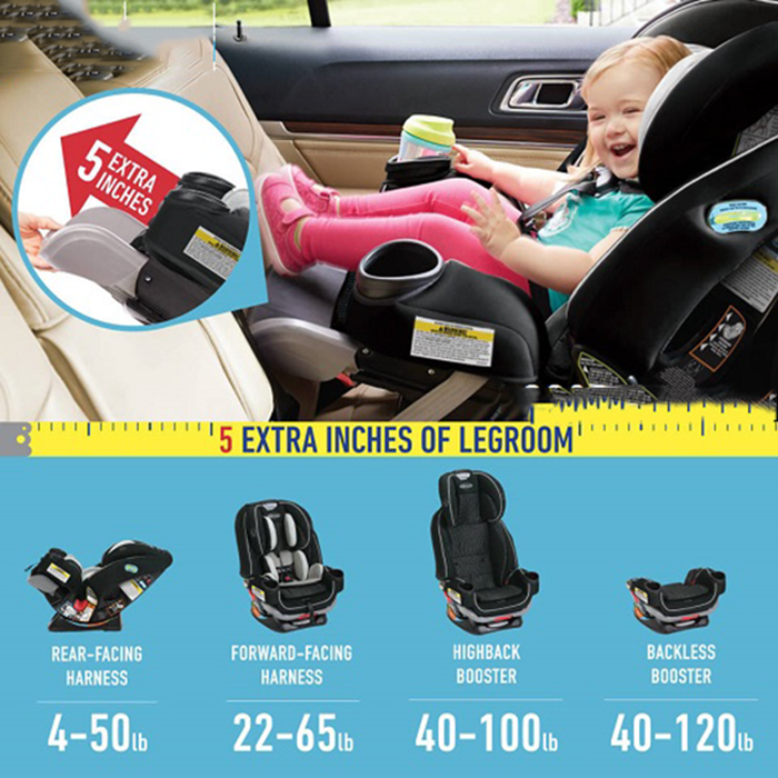 - Ghế ngồi ô tô Graco Graco 4Ever Extend2Fit bổ sung bảng điều khiển mở rộng 4 vị trí cung cấp thêm 12,7 cm của chổ duỗi chân cho phép con của bạn đi xe một cách an toàn vì phía sau dài hơn.