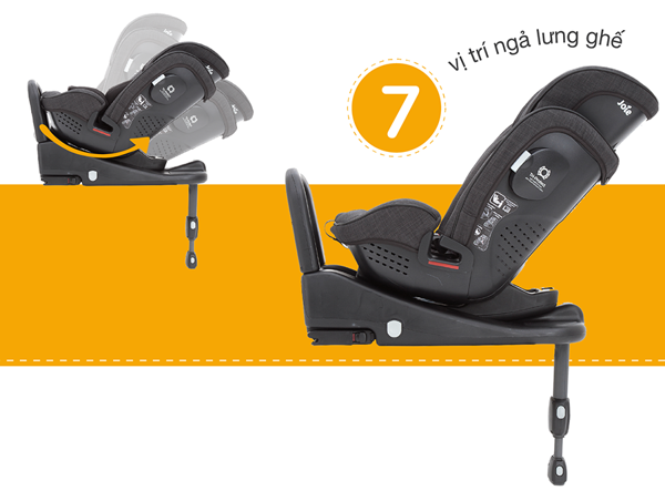 - Ghế ngồi ô tô Joie Stages ISOFIX có đến 7 vị trí ngả lưng cho bé sự thoải mái.