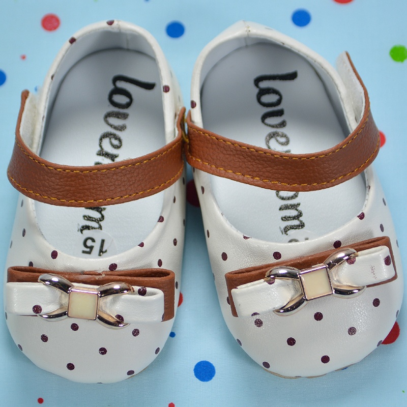 Mô tả Giày bít sơ sinh chấm bi nơ đôi khóa, nơ xòe , bông