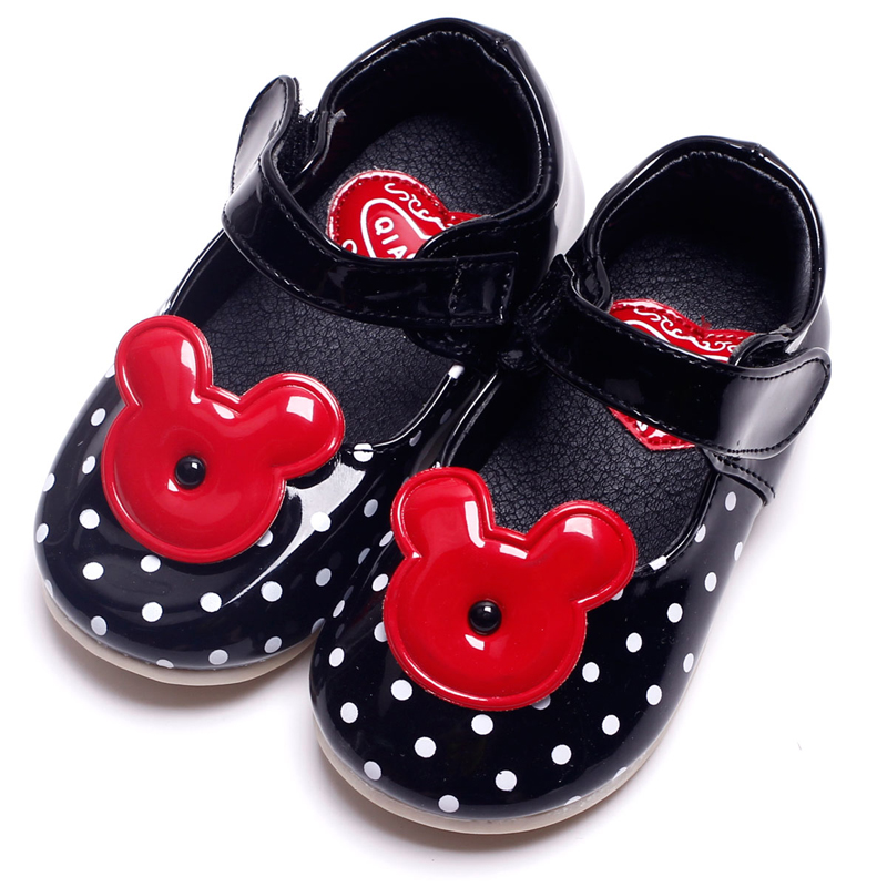 Sử dụng chất liệu giả da trơn bóng kết hợp kiểu dáng điệu đà, giày búp bê Micky chấm đen sẽ tô điểm thêm cho đôi chân của bé. Kiểu giày bít mũi, vừa bảo vệ ngón chân bé đồng thời giữ ấm tốt hơn cho trẻ khi thời tiết chuyển lạnh. Thiết kế ôm chân, thoải mái, không mang đến cảm giác bức bối, khó chịu cho bé.