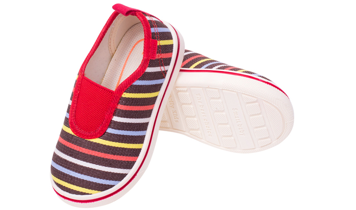 Kiểu giày lười trẻ em với họa tiết sọc ngang khỏe khoắn, năng động