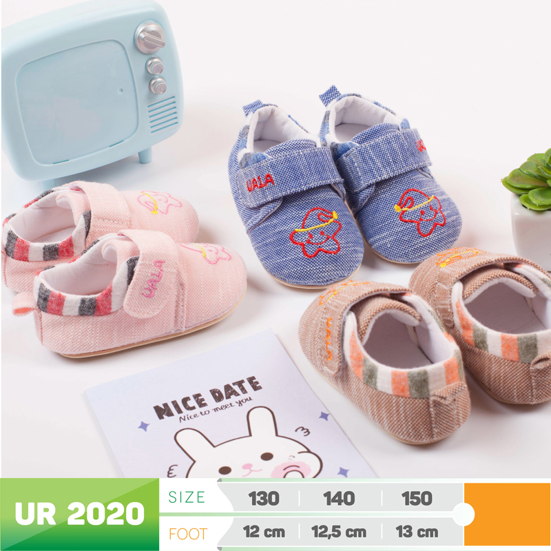 Giày tập đi đế kết Uala - UR2020 với thiết kế vô cùng êm ái và an toàn dành cho lứa tuổi tập đi, để bé có được những bước đi đầu đời thật vững chắc. Chất vải mềm, kết hợp đế bằng cao su non, kiểu giày bít mũi nên phù hợp để giữ ấm chân cho bé khi mùa đông.