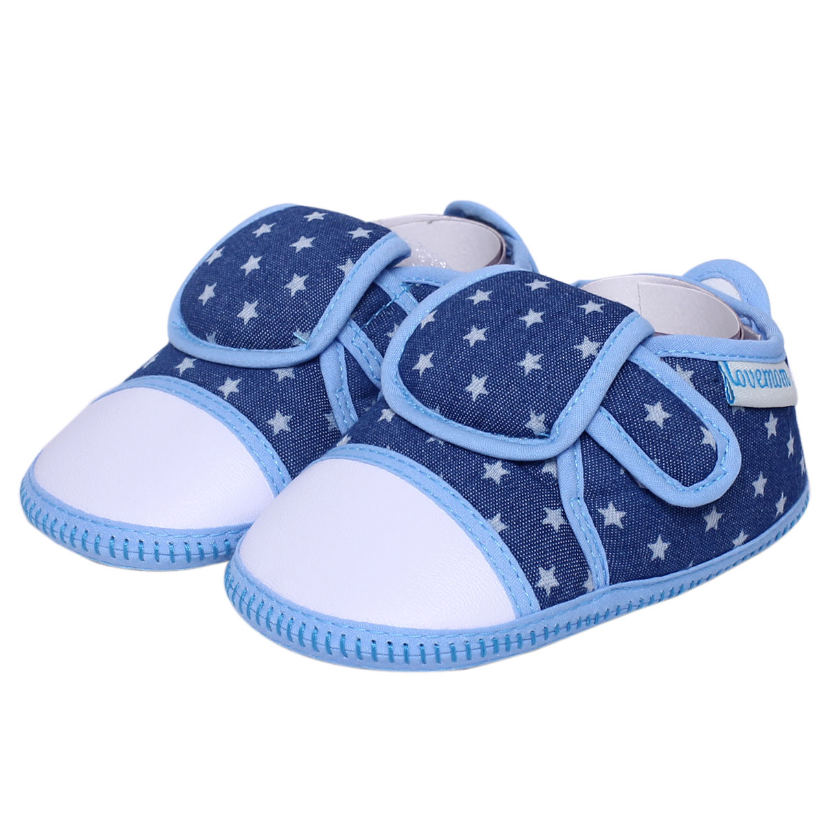 Giày tập đi họa tiết ngôi sao Lovemom với chất vải mềm, đế êm vừa có tác dụng giữ an toàn cho chân bé khi bắt đầu đi những bước đầu tiên đồng thời giữ ấm cho đôi chân của trẻ. Giày có thiết kế quai dán tiện dụng, có nhiều size cho bé từ 6 đến 18 tháng tuổi. Mẹ hãy đo chiều dài bàn chân bé để chọn được size phù hợp và nên chọn rộng hơn 1 - 2 size để bé không thấy khó chịu khi đi mẹ nhé.