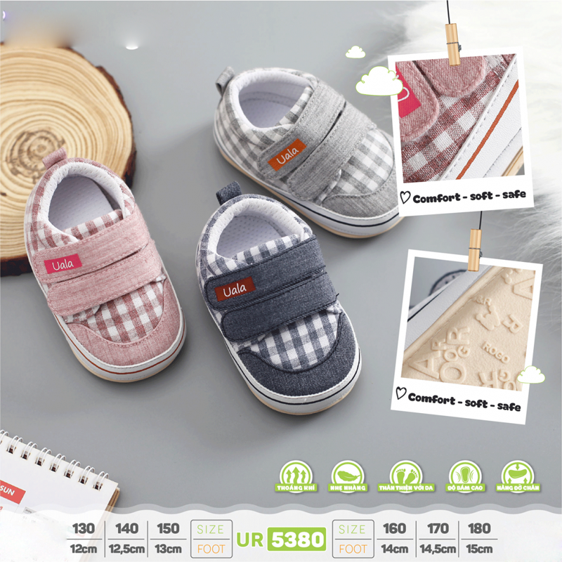 Giày tập đi kẻ sọc Uala Rogo UR5380 nằm trong bộ sưu tập Thu Đông mới nhất của thương hiệu Việt dành cho các bé từ 9 tháng trở lên. Ngoài chất vải cao cấp, đế bằng cao su non, giày còn được chăm chút với đường may tỉ mỉ, không sử dụng hóa chất trong quá trình sản xuất, an toàn cho bé yêu.