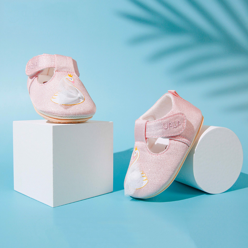 Giày tập đi Uala UR5466 với họa tiết thiên nga cùng gam màu hồng ngọt ngào