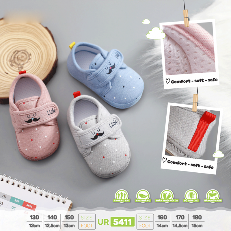 Giày tập đi Uala với chất vải mềm với các lỗ thoáng khí bên hông