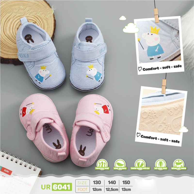 Hướng tới sự an toàn và thân thiện cho đôi chân của trẻ, giày tập đi Uala Rogo UR6041 ngoài việc sử dụng chất liệu an toàn, tự nhiên, sản phẩm còn không sử dụng hóa chất trong quá trình sản phẩm. Kiểu giày thu đông với họa tiết thêu heo Peppa dễ thương cho bé từ 9 tháng trở lên.