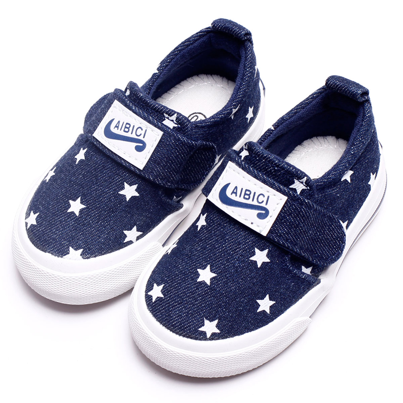 Giày thể thao trẻ em in hình sao (1-5T) được thiết kế với chất vải jean, dây giày (quai dán) có thể giúp bé điều chỉnh cho phù hợp với mu bàn chân của trẻ. Các cạnh hay bề mặt giày vô cùng mềm mại mà không hề cứng, giúp bé không bị trầy xước khi di chuyển mạnh. Đế được thiết kế tạo độ thoải má, mặt ngoài với các rãnh bám với bề mặt tiếp xúc, giúp bé giữ được sự thăng bằng khi dịch chuyển mà không bị ngã.