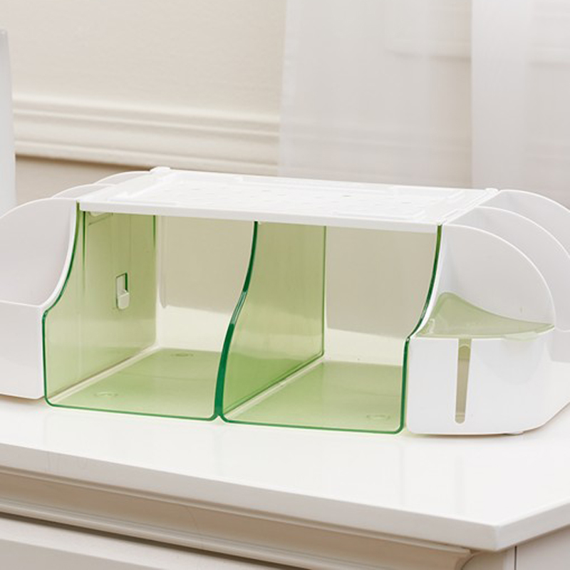 Giá đựng đồ cho bé bằng nhựa Munchkin là vật dụng thiết yếu giúp việc sắp xếp đồ cho con được gọn gàng và ngăn nắp. Trong ngăn của giá là hộp kín chia 2 ngăn để đựng đồ tránh bụi. Ở trên giống như chiếc bàn mini đựng hộp giấy ướt hay đồ khác 2 bên cạnh chia làm các ngăn to nhỏ khác nhau phù hợp với nhiều loại đồ dùng khác nhau như tăm bông, khăn tắm, lược nhỏ của bé, dầu tắm. Mọi thứ sẽ thật gọn gàng, ngăn nắp, những món đồ nhỏ nhắn của bé sẽ không sợ bị lạc mất.